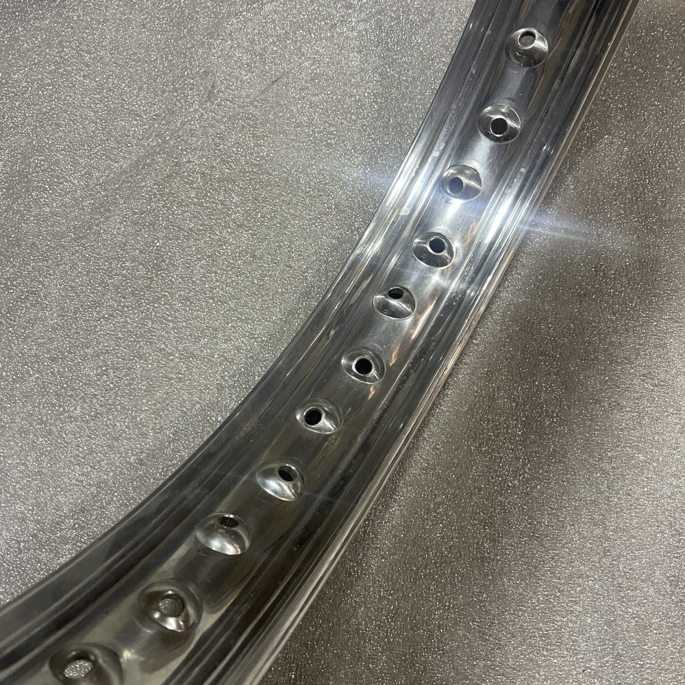 The Super (TS) polished alloy rim features a classic valanced profile, popular on bikes from the late 60s and 70s. Offering both style and function, this valanced rim is perfect for restoring vintage motorcycles with a touch of classic flair.