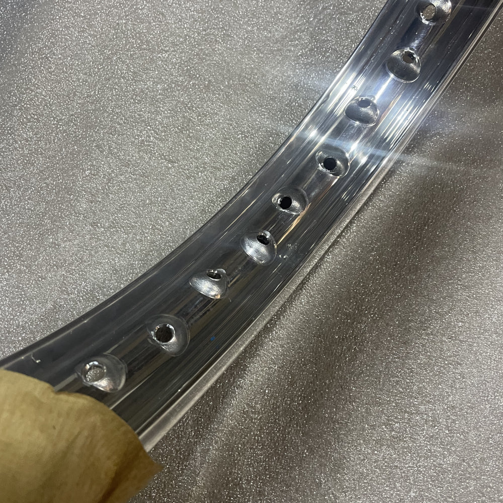 The Super (TS) polished alloy rim features a classic valanced profile, popular on bikes from the late 60s and 70s. Offering both style and function, this valanced rim is perfect for restoring vintage motorcycles with a touch of classic flair.